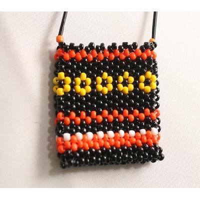This pouch is perfect for holding keepsakes, talismans and, of course, amulets. It is hand stitched with incredibly strong jeweler’s cord and glass seed beads in the traditional peyote stitch style.